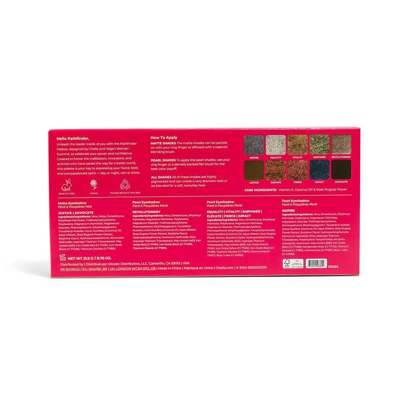 - UNLEASH THE LEADER INSIDE OF YOU: with the Pathfinder vegan eyeshadow palette, designed by Chella and Vegan Women Summit, to celebrate your power and confidence.