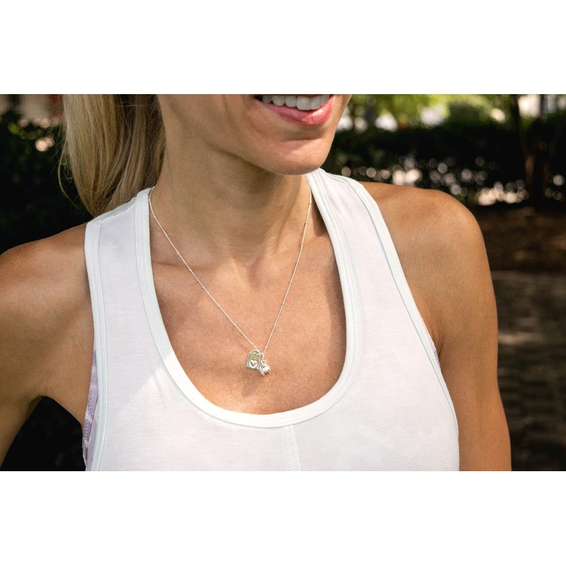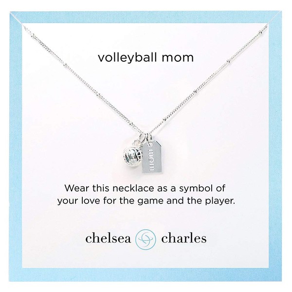- DOUBLE CHARM NECKLACE: Pendant necklace features a sterling silver plated volleyball charm (8mm) and sterling silver plated reversible mom tag (.35 x .5") with our signature heart on the back