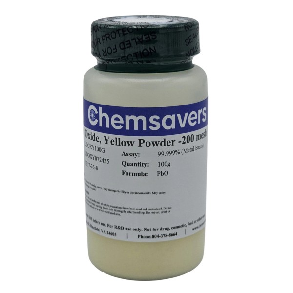 Chemsavers Lead(II) Oxide, Yellow Powder -200 mesh, 99.999% (Metals Basis), 25g