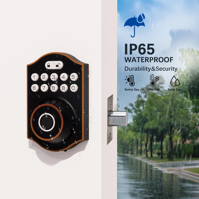 - Security & Durability: This code door lock features low battery alerts, privacy mode, auto-lock, and anti-peeping password. It operates from -13°F to 158°F (-25°C to 70°C) and is suitable for indoor/outdoor use. The lock is IP65 water-resistant, constructed from zinc alloy, runs on AA batteries (not included), and has emergency Type-C charging.