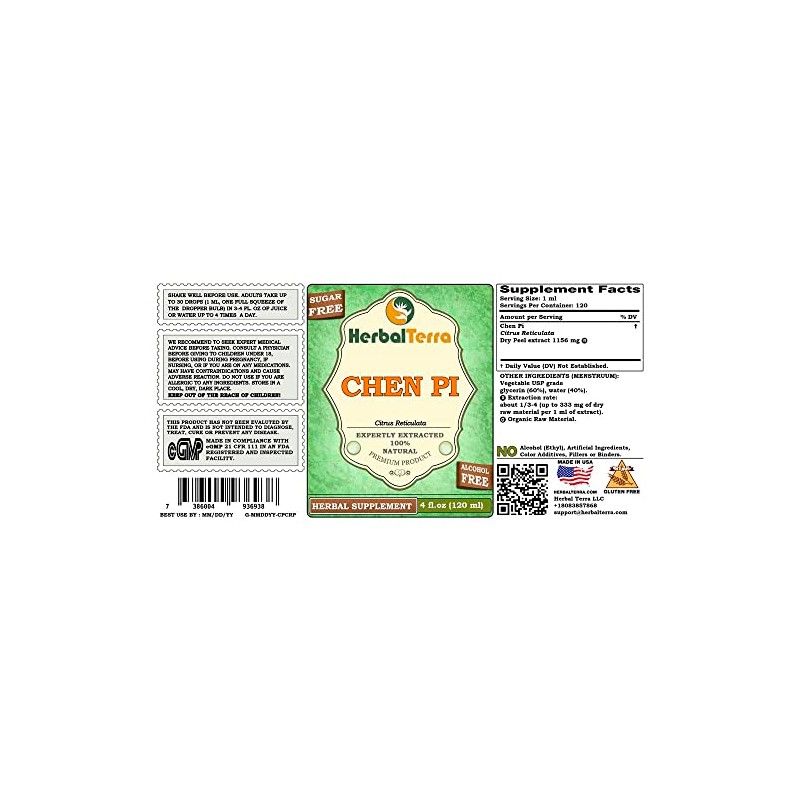 Chen Pi, Tangerine (Citrus Reticulata) Glycerite, Dried Peel Alcohol-FREE Liquid Extract (Brand name: HerbalTerra, Proudly made in USA) 4 fl.oz (120 ml)