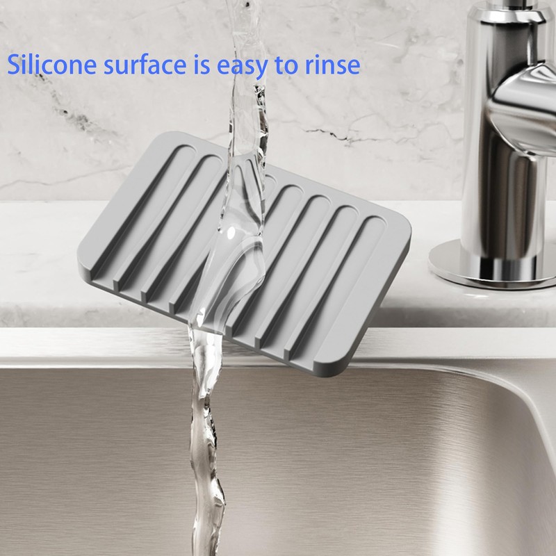 - Non-slip design: With non-slip silicone grooves and raised edges, small items such as soap, sponges, razors or jewelry can be fixed in place without slipping. The sturdy silicone soap holder base can adapt to any surface