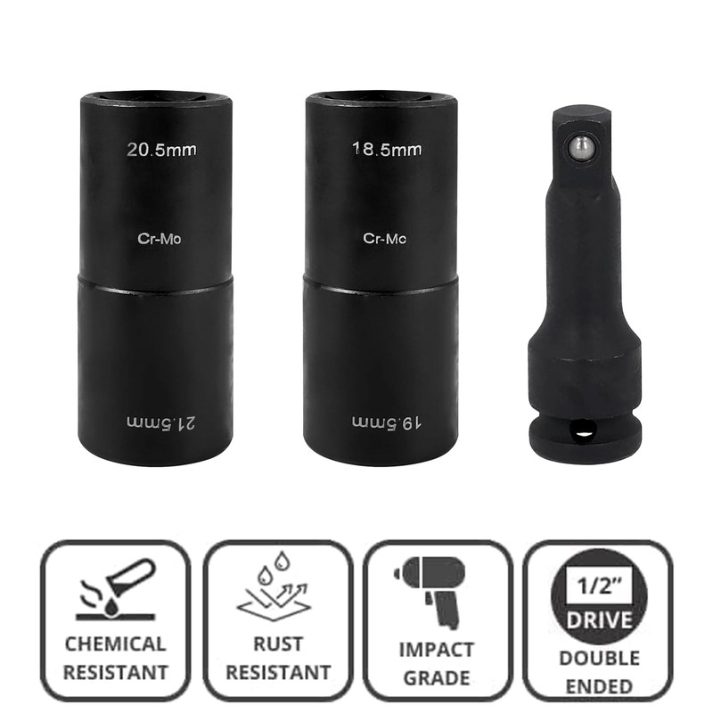 CHENGCKJ 3 Stück Doppelkopf Schlagschrauber Nüsse Set 18,5/19,5/20,5/21,5 mm mit 1/2" Kraft-Verlängerung Schlagnuss Doppelkopf Radmutternschlüssel Radmuttern Nuss Werkzeug 1/2" fit Alle Modelle
