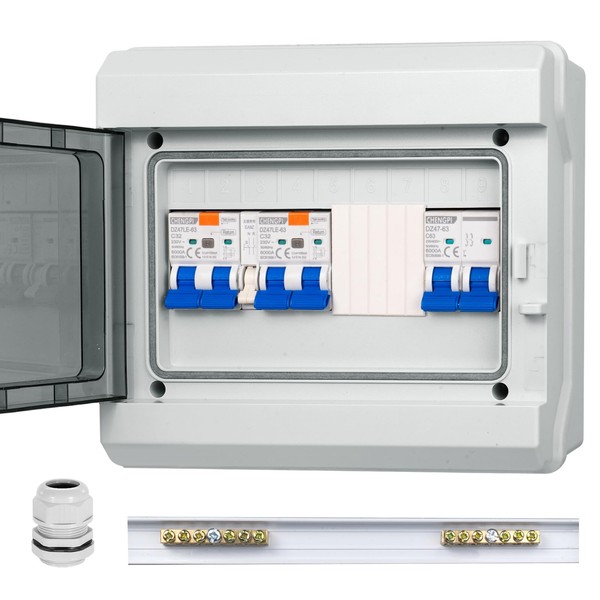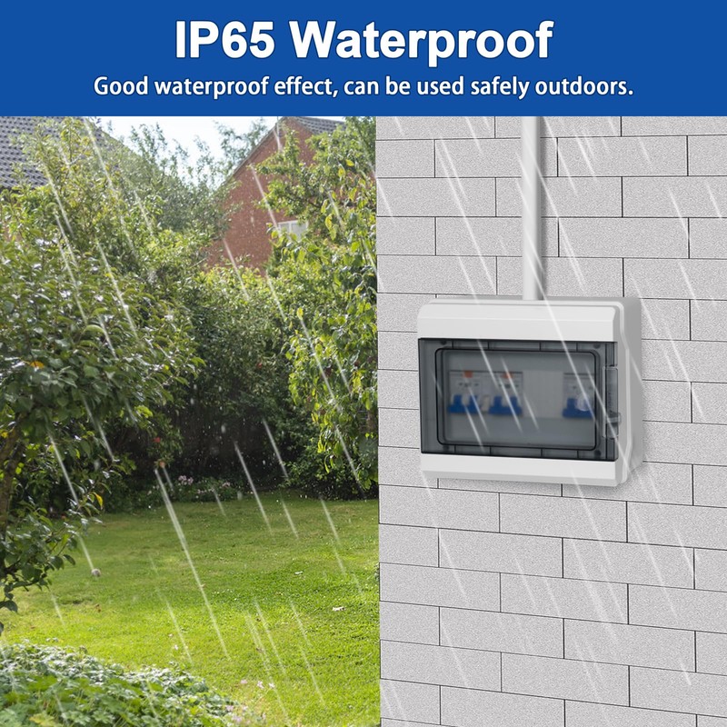 - 【 High-quality Enclosure】The generator transfer switch enclosure is mainly made of high-quality thick plastic material, which is high flame retardant and impact resistant, high hard, difficult to break or damage and waterproof according to IP65 for a long service life. Equipped with three 63 Amp circuit breakers for customizable overload protection, ensuring the safety of your devices and power systems.