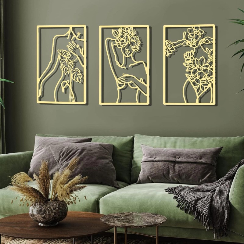 CHENGU 3 Pieces Metal Minimalist Abstract Woman Wall Art Line Drawing Wall Art
