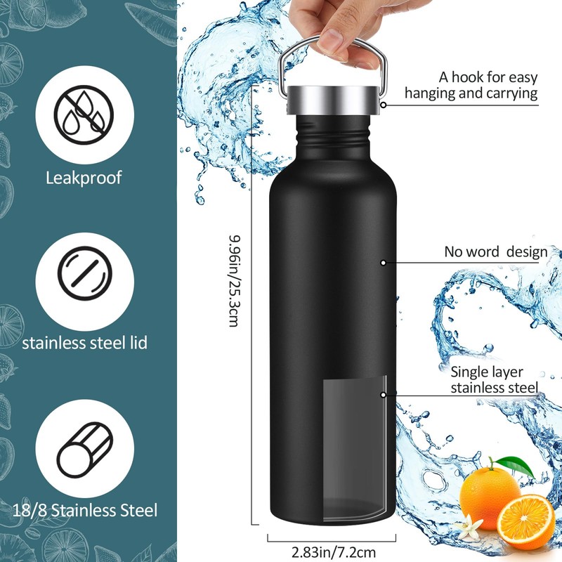 - Reliable and Serviceable: the black single walled stainless steel bottles set is made of quality 304 stainless steel material, which is sturdy and firm to use and drink, allowing you to enjoy the outdoors with peace of mind; The single wall stainless steel water bottle has no insulation function, and please be careful when heating water