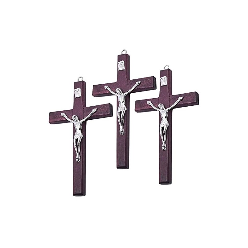 CHENGXIN CHENGXIN Catholic Crucifix Wall Cross 3 Pack, Small Wooden Cross with Jesus for Home Decor, 4.7 inches