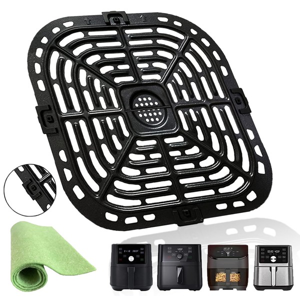 • ⛳ What You Can Get: 1×Air fryer grate, 🎁Gifts: 1×Kitchen non-stick cleaning cloth, 4×Air fryer rubber bumpers.