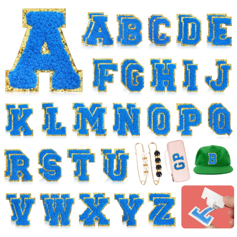 - Ideal for DIY Projects: Our patches include two complete sets of 26 blue chenille letters (A-Z), totaling 52 letters, with sparkling gold glitter trim, perfect for a variety of crafting projects. They come with two 2-inch pins to meet most crafting needs. Durable and machine washable when applied correctly, they maintain their color and shape even after multiple washes. Whether for fashion, repairs, or custom details, these patches offer lasting appeal