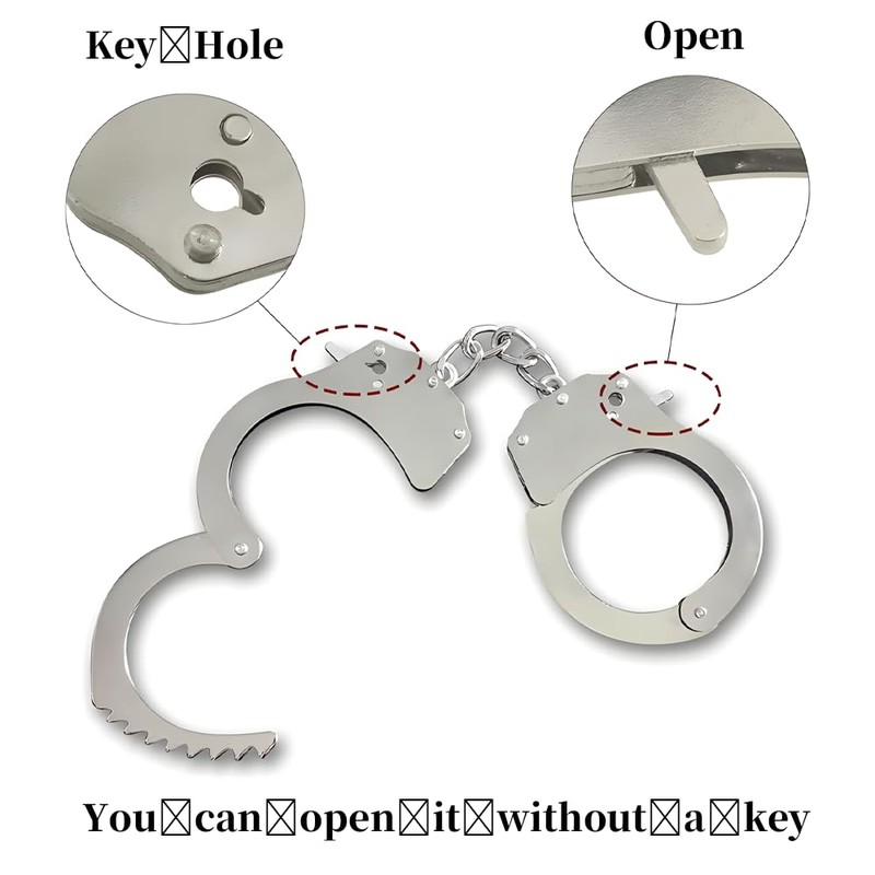 • MATERIAL: The handcuffs are made of durable metal materials, not easily deformed after being dropped. The edges of the handcuffs are smooth and will not scratch the user's hands