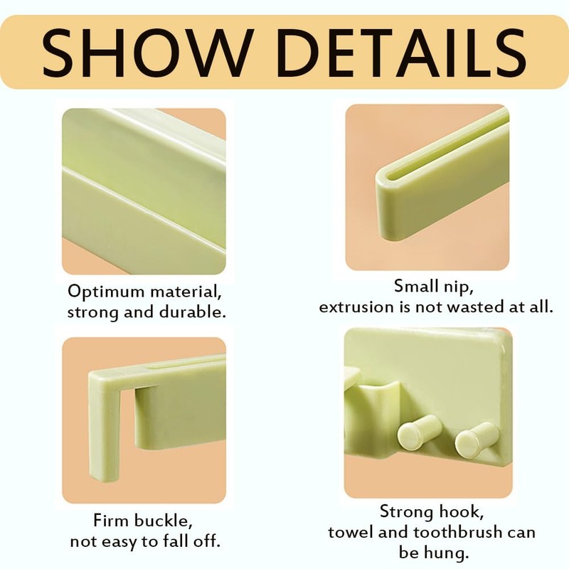 Both quality and practicality,to protect the long term use.The multifunctional toothpaste holder is made of high quality ABS material,with round and smooth corners,no sharp burrs and safe and reliable use;The durable material is not easy to deform and break,and has excellent load bearing,which can stably support the weight of toothpaste.The plastic surface is clean and convenient,and the water stains can be wiped clean at once,so as to keep a clean appearance at all times and ensure the long lasting use effect as new.