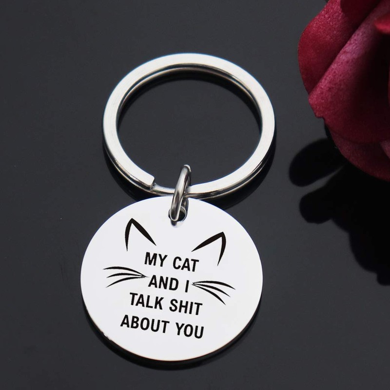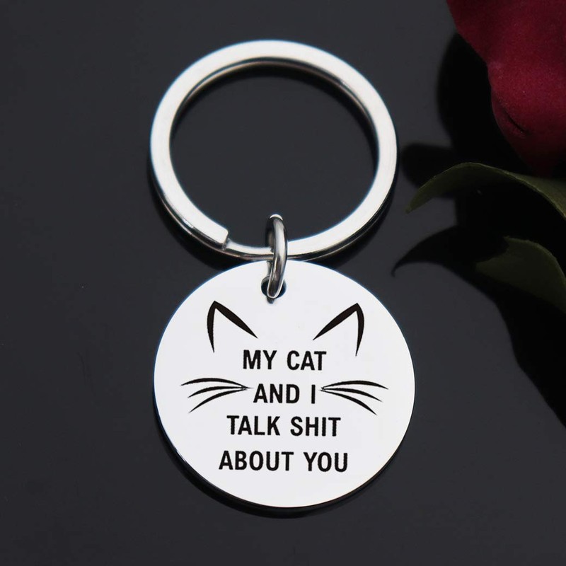 CHENVA Cat Lover Gift I Work Hard So My Cat Can Have A Better Life Keychain Cat Lover Gift Keychain for Mom Sister Friends (My Cat and I Talk Shit About You)