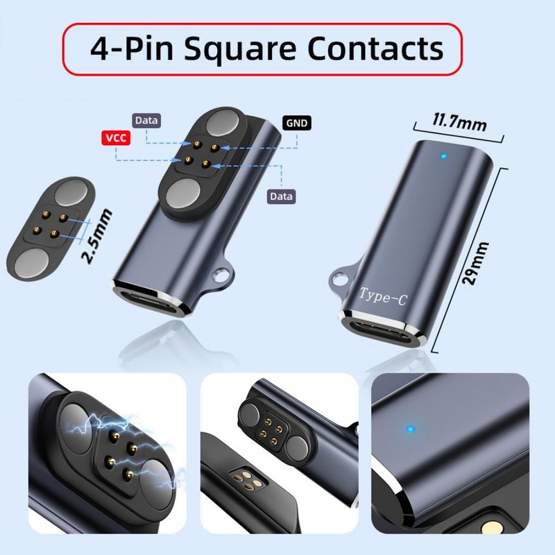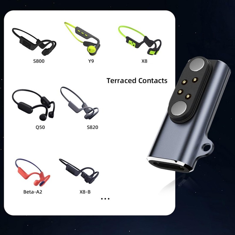 chenyang 2 Pack USB C to Bone Conduction Headphone Charger Magnetic Charging Adapter for Pitch 2.5mm 4Pin Terraced & Square Contacts