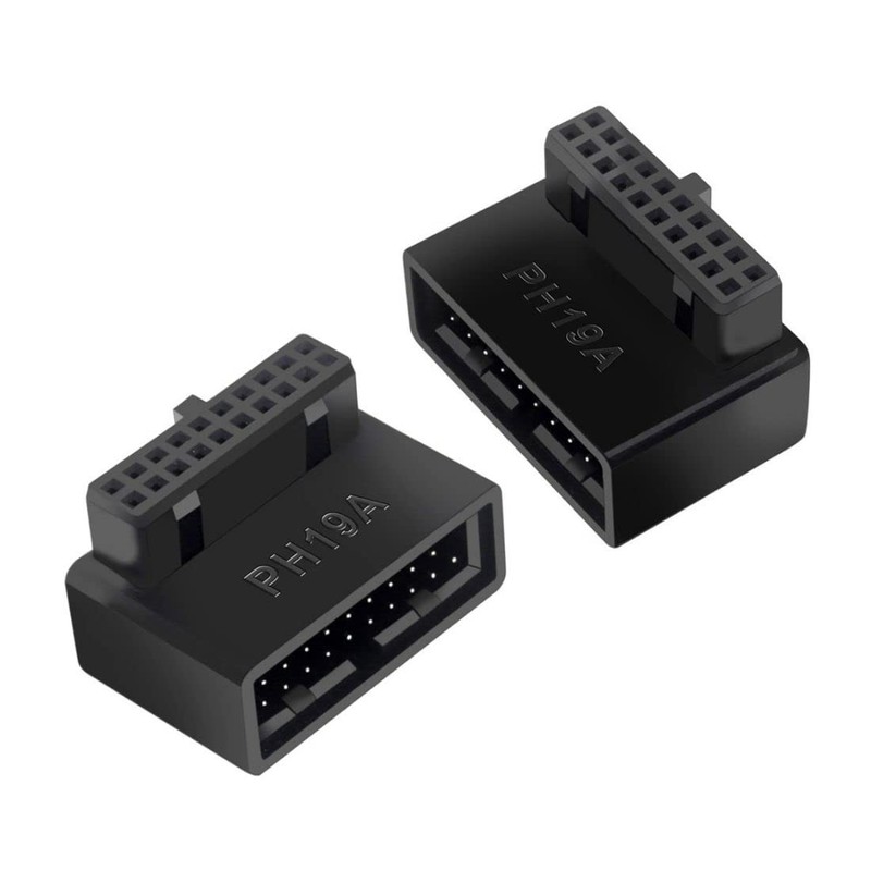 chenyang - Paquete de 2 cabezales USB 3.0 para panel frontal de 19/20 pines macho a hembra de 90 grados, adaptador de conector de cambiador de género, tipo sobremoldeado