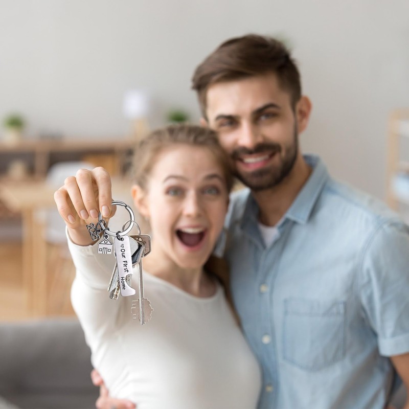 - This New Home 2025 charm, unisex keyring with cute house pendant, new adventures key ring personalised, blessing words bring happiness. is a charming housewarming gift for a new homeowner.