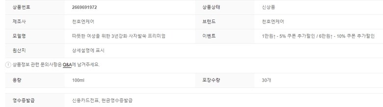- 포장단위별 내용물의 용량(중량), 수량, 크기: 상세정보 별도표기 / 상세정보 별도표기 / 상세정보 별도표기