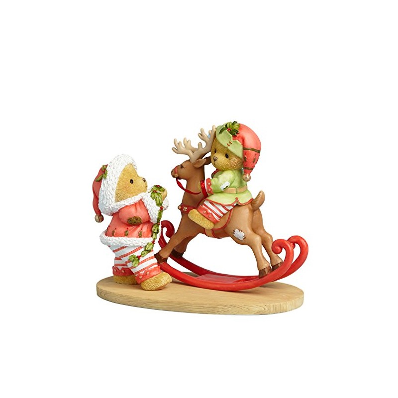 Cherished Teddies Santas Workshop Rocks Bear Riding Reindeer Toy Figurine