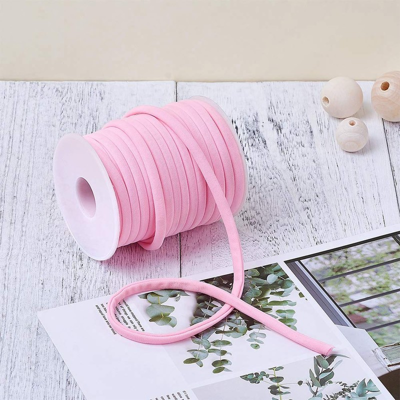 Cheriswelry 21.87 Yards 5mm Flat Nylon Cord Pink Soft Stretch Beading Strings Elastic Band Rope Chinese Knotting Cord Braided Fabric Threads for DIY Crafting Sewing Macrame Jewelry Making