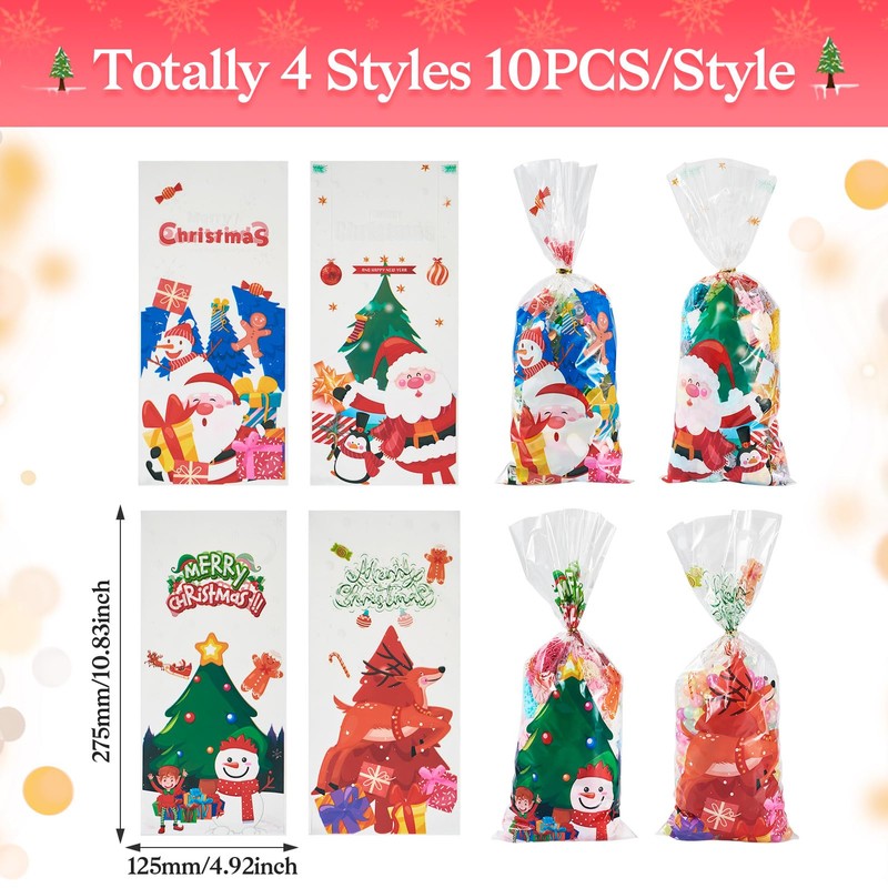 Cheriswelry 40Pcs Christmas Cellophane Treat Bags Candy Cookie Bags with Twist Ties 27.5x12.5cm for Xmas Holiday Party Gift Wrapping Decor Supplies