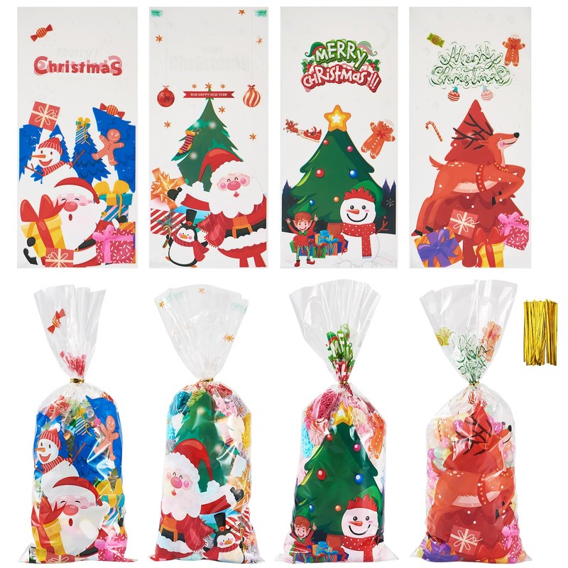 - Package Included: You will receive 40 pieces Christmas cellophane bags ( 4 styles, 10 pieces each style ) and some gold twist ties, available for multiple Xmas party decoration and daily use. Size--about 27.5cm long, 12.5cm wide.