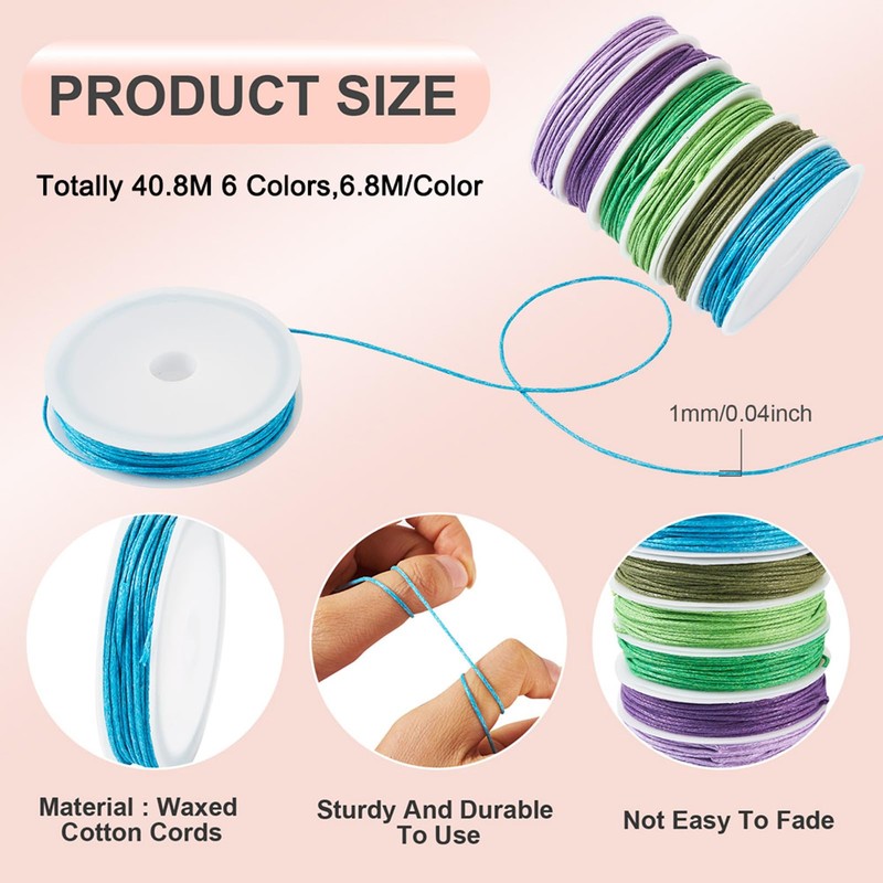 - Package Include: You will receive 6 roll waxed cord--Size: about 1mm wide, 6 colors, 6.8m/color, 40.8m.