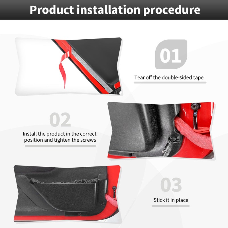 - High - Quality Build: Front door storage pockets crafted from top grade ABS material with a sleek black textured finish. These front door storage boxes are not only robust, durable, and resistant to abrasion and corrosion, but also blend seamlessly with your door's aesthetics, adding a rugged off - road charm to your ride.