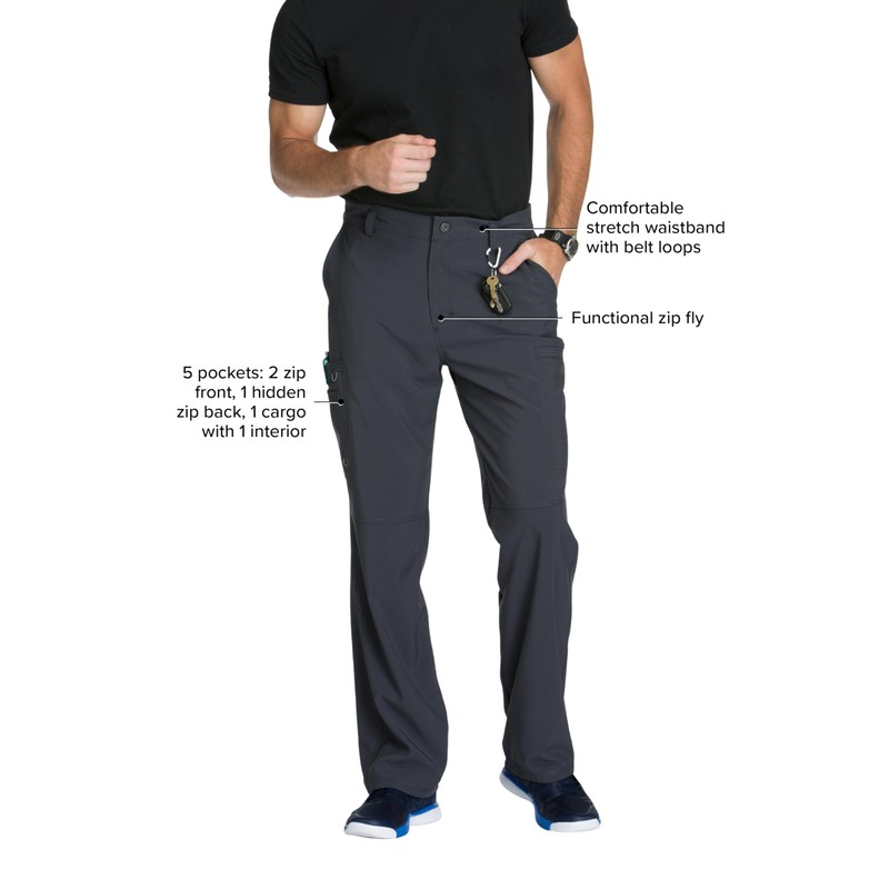 Cherokee Infinity Men's Scrub Pants Modern Fit 6 Pockets Tapered Leg with Drawstring Plus Size CK200AS, 2XL Short, Pewter