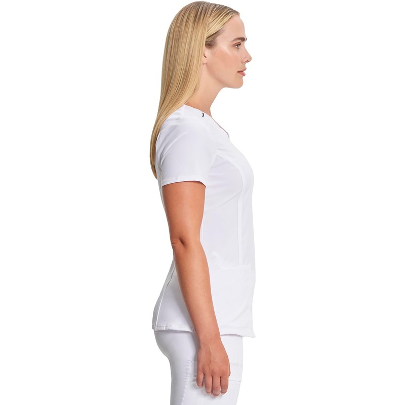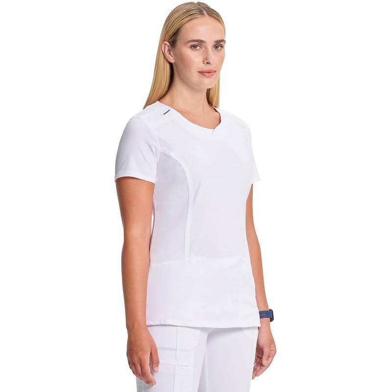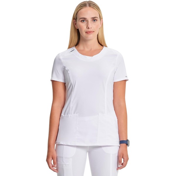 Cherokee Infinity Scrubs for Women Round Neck Scrub Top with 3 Pockets & 360° Stretch Plus Size 2624A, 3XL, White
