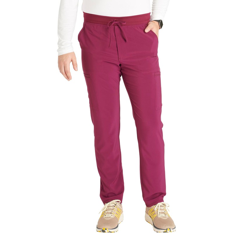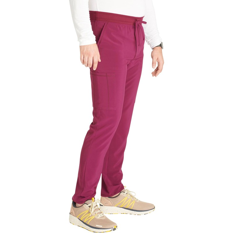 Cherokee Men's Tapered Leg Pant Zip Fly with 5 Pockets and Elastic Rib-Knit Waistband - CK252A, L, Wine - Large,Wine