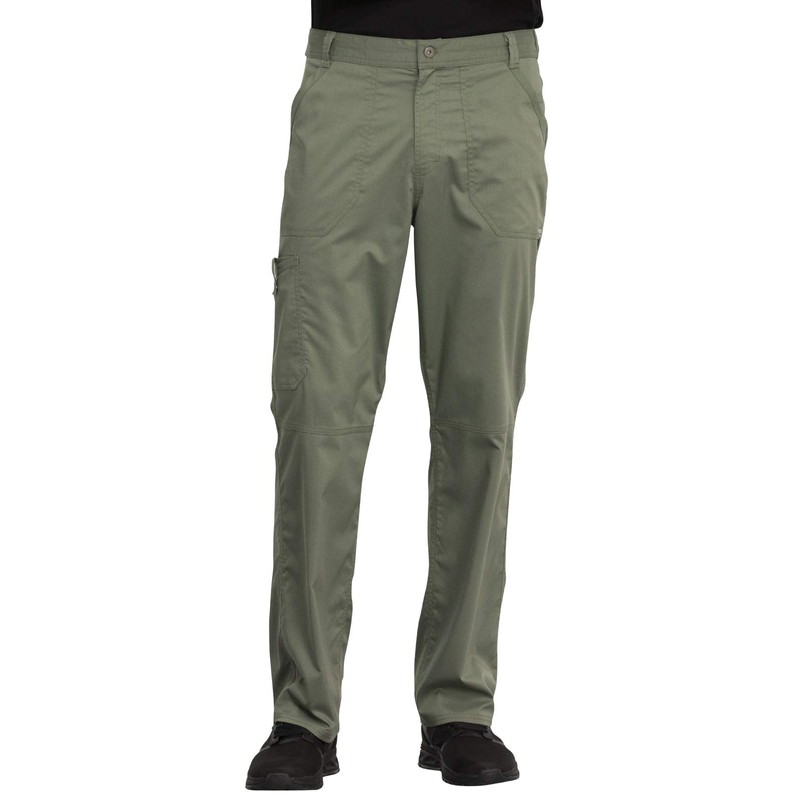 Cherokee Mens Scrub Pants with Cargo Pockets, Two-Way Stretch Modern fit Button Closure with Inside Drawstring Pants WW140, M, Olive