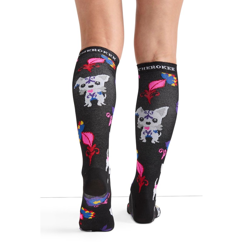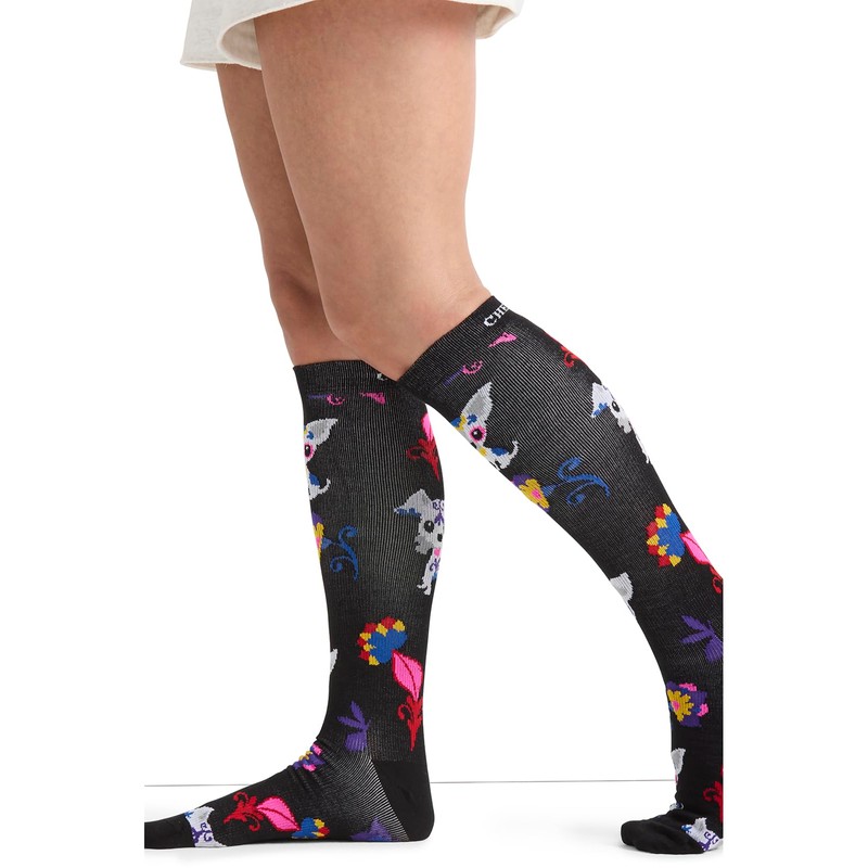 Cherokee Printsupport Women 12 & 10-15 mmHg Support Socks, Plus, Sugar Skull Pups