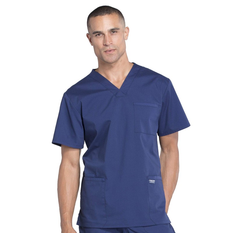 Cherokee Scrubs for Men Workwear Professionals V-Neck Four-Pocket Scrub Top WW695, S, Navy