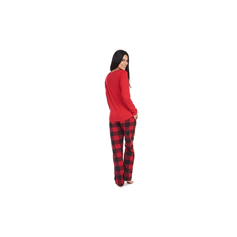 Cherokee Women's Pajama Set Soft Breathable Shirt and Pants, Extra Large, Red and Black Buffalo Plaid