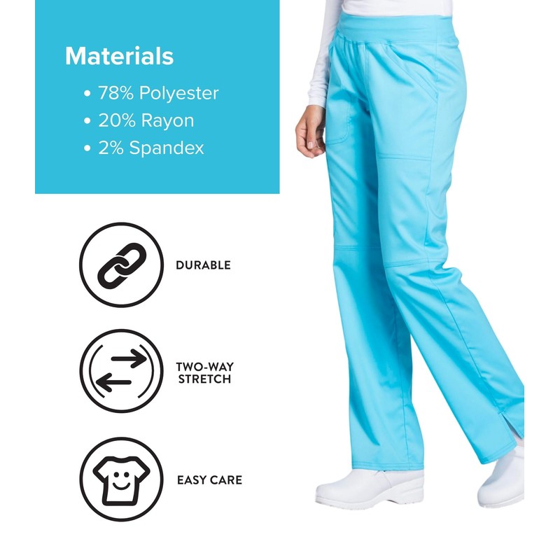 Cherokee Women Scrub Pant with Straight Leg Pull-on Pant Medical Bottom with 4 Pocket & 2-Way Stretch Fabric - WW110P, XS Pet Turquoise