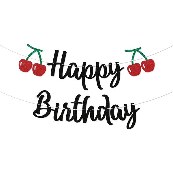 • 🍒A BIG HIT - This glittery Cherry Birthday banner is designed for Cherry Theme Birthday Party. It's a way for people to say Happy Birthday.This year, birthday party will be even more cheerful with this Cherry Happy Birthday banner.