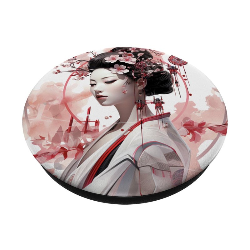Cherry Blossom Geisha Saga Futuristic Elegance PopSockets Swappable PopGrip