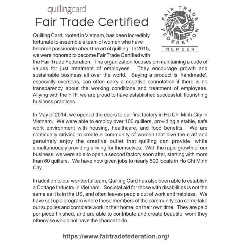 - Experience the ancient art of "Quilling" with a beautifully hand-crafted quilled greeting card. Rolled strips of different colored paper makes for a 3-dimensional design (USE ZOOM FEATURE TO SEE DETAIL). Hand-made under strict Fair Trade Federation guidelines.