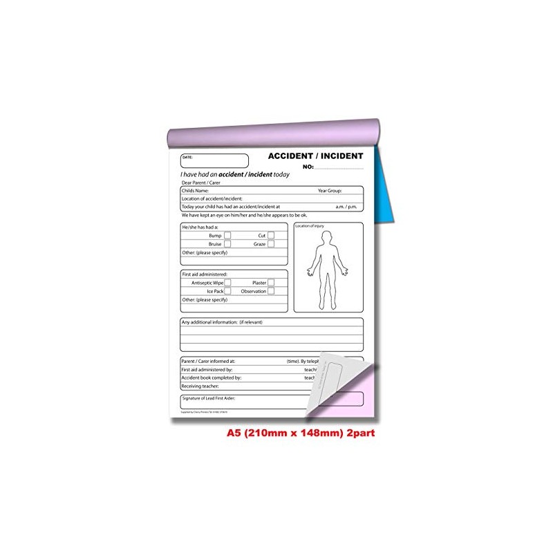 • Convenient Size: Each book is A5, making it easy to store in a drawer. This size provides ample space for clear writing and easy reading. Each book contains 50 duplicate sets, sufficient for recording 50 injuries/incidents