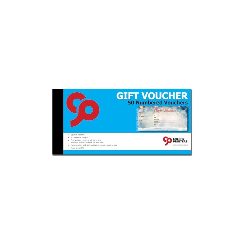 - 50 personalised and blank gift vouchers (gift certificates) per book - vouchers are perforated for easy removal