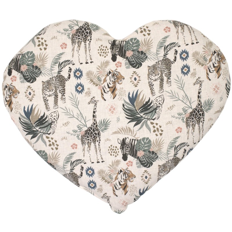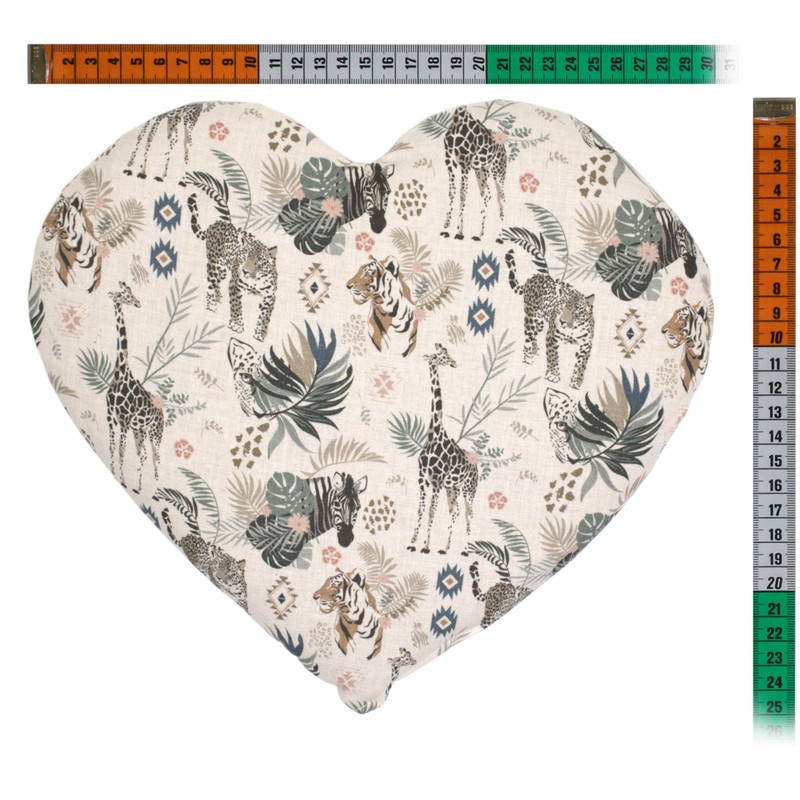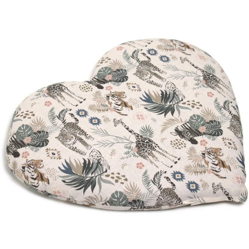 Cherry Stone Cushion Heart Approx. 30 x 25 cm – Organic Fabric Wild Animals – Heat Cushion – Grain Cushion – A Charming Gift