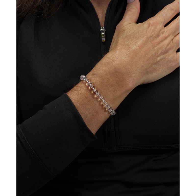 - CONTAINS: A clear quartz bracelet made with 6mm semi-precious beads packaged inside a protective cloth drawstring pouch. Quartz is a mineral containing silicon and oxygen and is one of the most abundant minerals on the earth. Quartz is one of the secondary birthstones for the month of April.