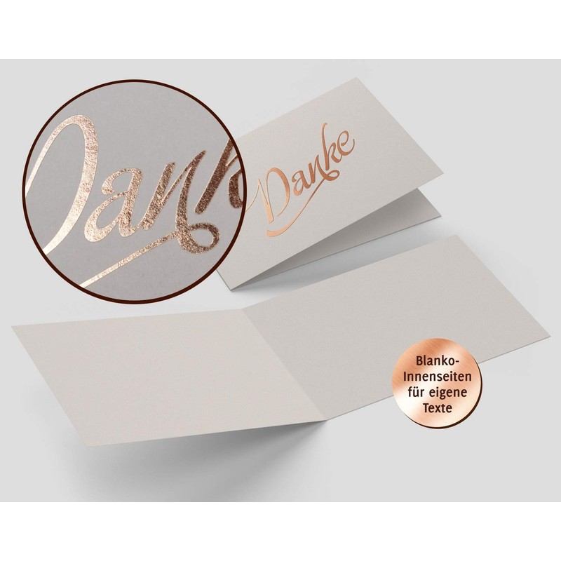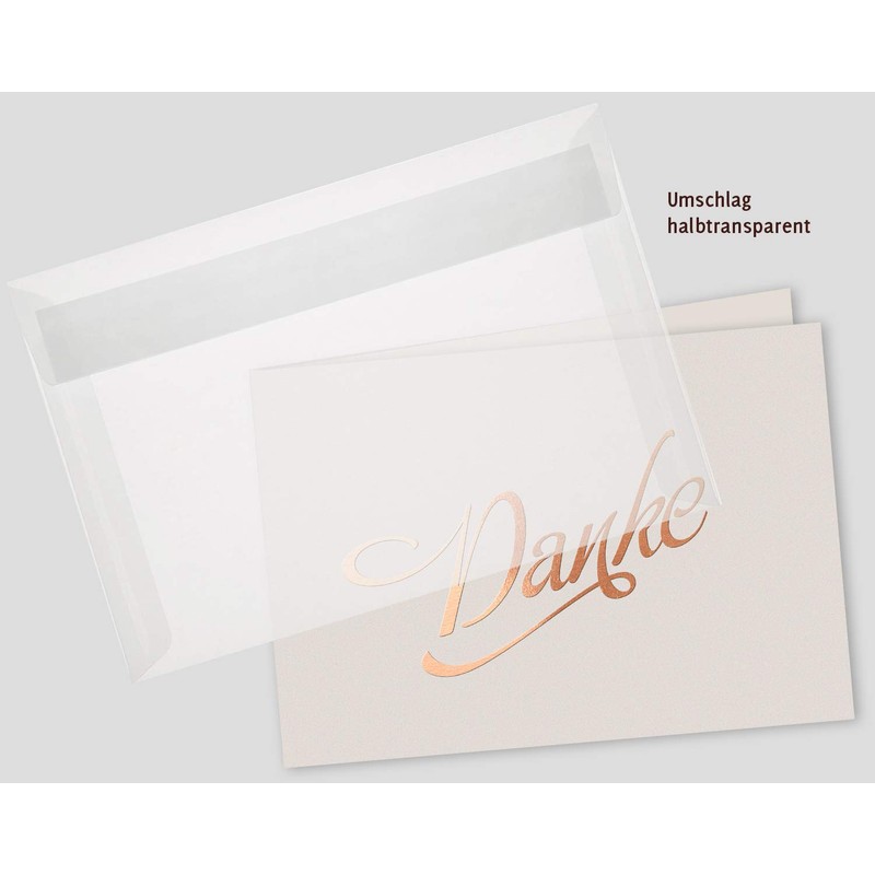 - High-quality set: 20 thank you cards and 20 envelopes "hot foil embossing rose gold" with blank inner pages and envelopes made of semi-transparent paper with peel off strips for perfect adhesion