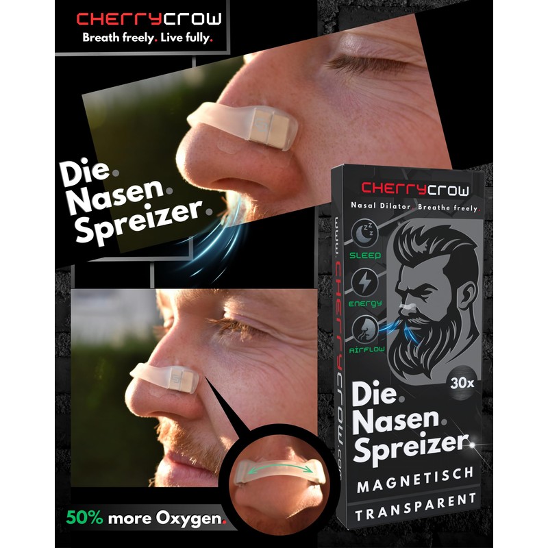 CherryCrow - The Nose Separators | (Pack of 15) Magnetic Nose Plasters for Better Breathing & Sleeping - Starter Kit Magnetic Strips Nose Dilator - Transparent Pro Edition (Starter Kit)