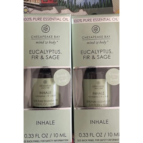 2 Ct Chesapeake Bay 0.33 Oz Mind & Body Inhale Eucalyptus Fir Sage Essential Oil. Duo