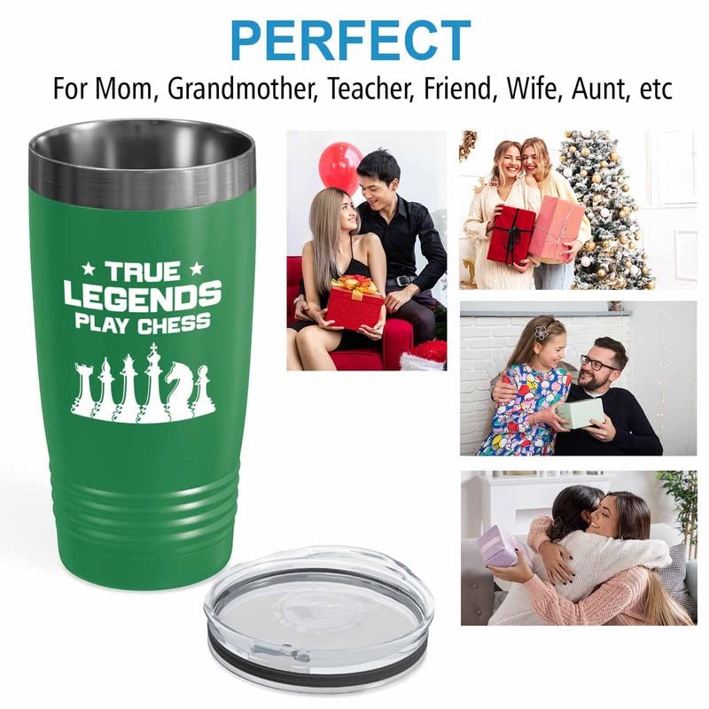 Chess Green Tumbler 20oz - True legcnds play chess - 3 Player Chess Board Gifts for Chess Lovers Chess Club Strategy Chess Dad Chess Son