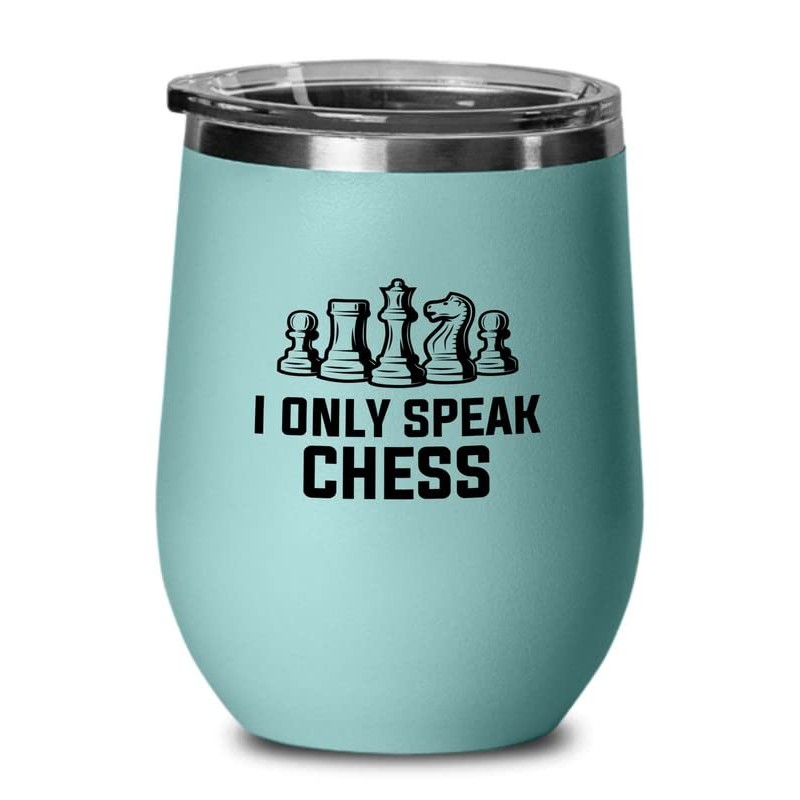 Chess Teal Wine Tumbler 12oz - I Only Speak Chess - Funny Chess Gifts Set Board Pieces Horse Knight Player Game Pawn Strategy