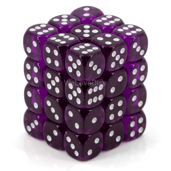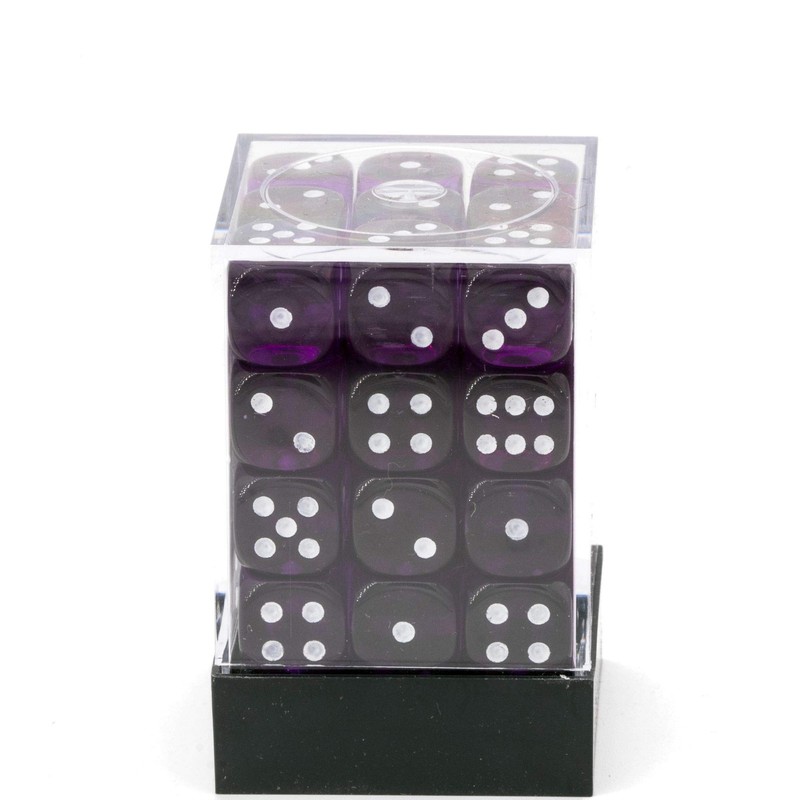 Chessex Dice D6 Sets: Purple with White Translucent - 12Mm Six Sided Die (36) Block of Dice