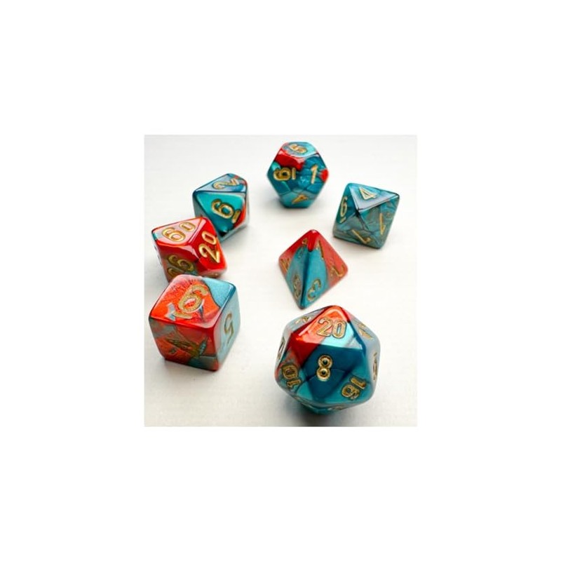 - Chessex Mini Dice with Gold Numbers 10 mm Red and Teal 7 Pieces