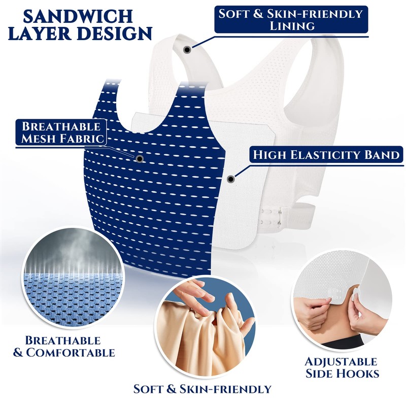 - SANDWICH LAYER DESIGN: Breathable mesh fabric, high elasticity band, soft&skin-friendly lining. LGBTUNICORNS binder trans unique sandwich structure, adding 20cm width elastic bandage between the Fabric and Lining, better effect for flatten chest.