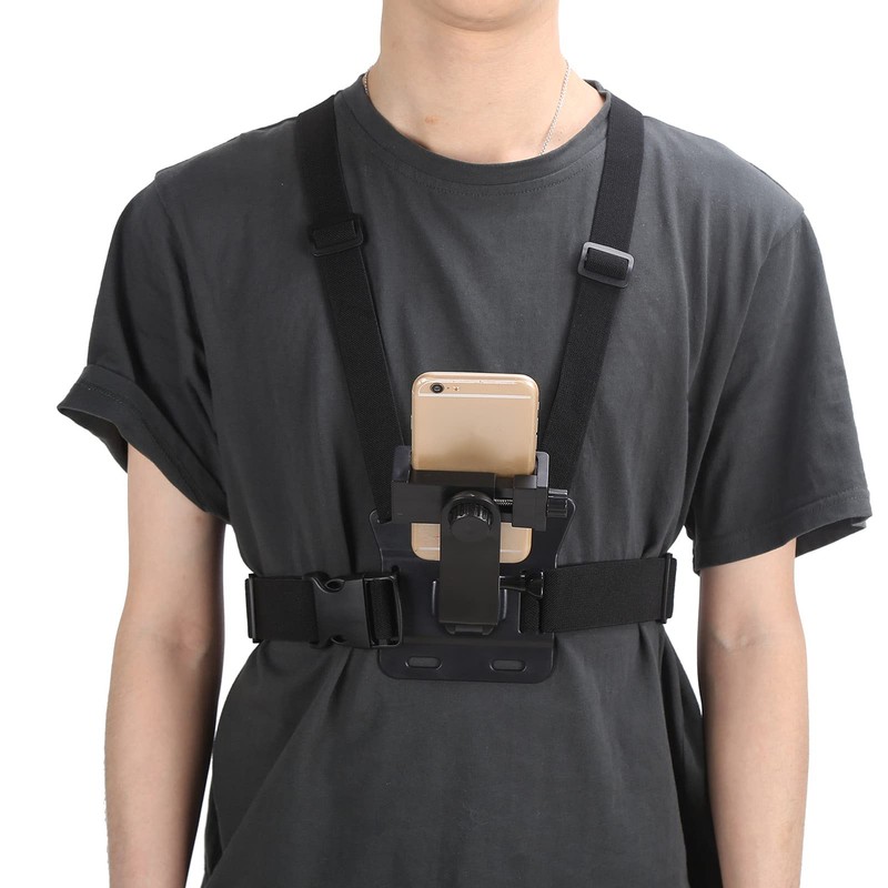 Chest Strap Mount, Chest Phone Clip Mount, Camera Clip Chest Mount, Adjustable Phone Clip Mount with Chest Strap Attachment Bracket for Sports Camera Phones